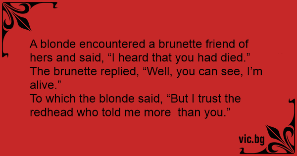 A blonde encountered a brunette friend of hers and said, “I heard that you had died.”