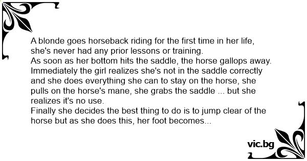 A blonde goes horseback riding for the first time in her life, she's never had any prior lessons or training.