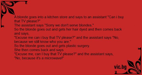 A blonde goes into a kitchen store and says to an assistant "Can i buy that TV please?"