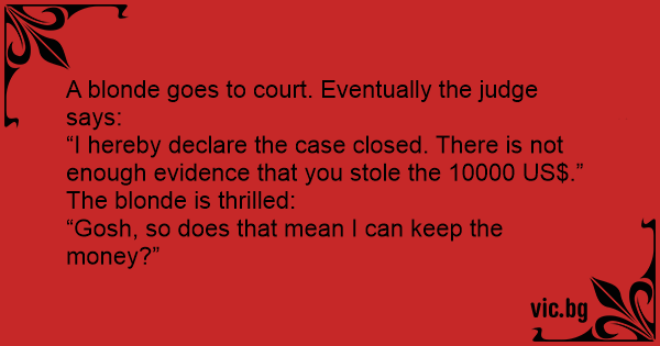 A blonde goes to court. Eventually the judge says: