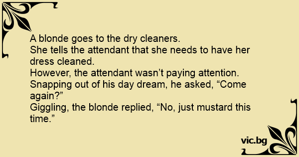 A blonde goes to the dry cleaners.