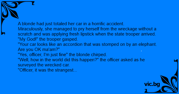 "Officer, it was the strangest thing!" the blonde began.