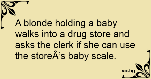 A blonde holding a baby walks into a drug store and asks the clerk if she can use the storeÂ’s baby scale.