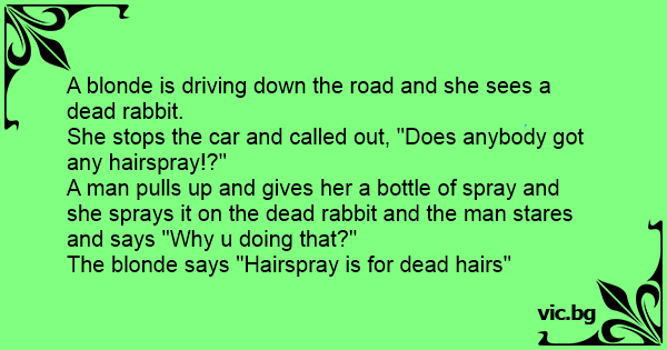 A blonde is driving down the road and she sees a dead rabbit.