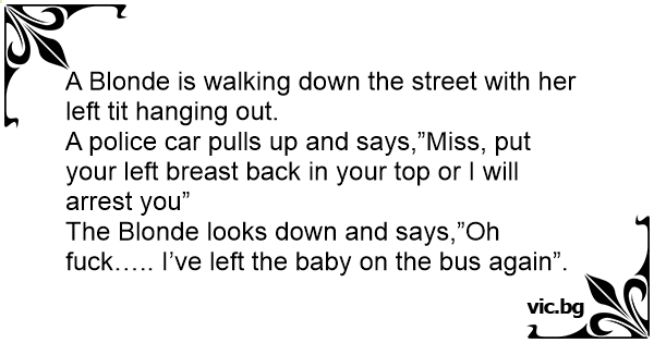 The Blonde looks down and says,”Oh fuск….. I’ve left the baby on the bus again”.