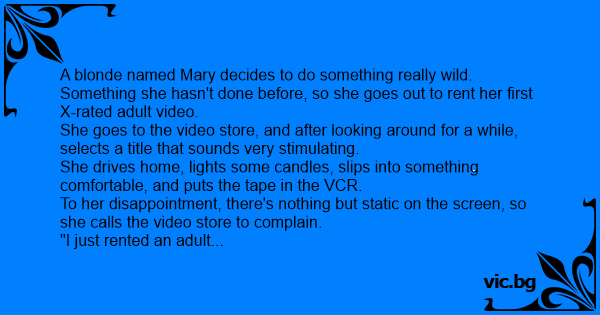 A blonde named Mary decides to do something really wild. Something she hasn't done before, so she goes out to rent her first X-rated adult video.