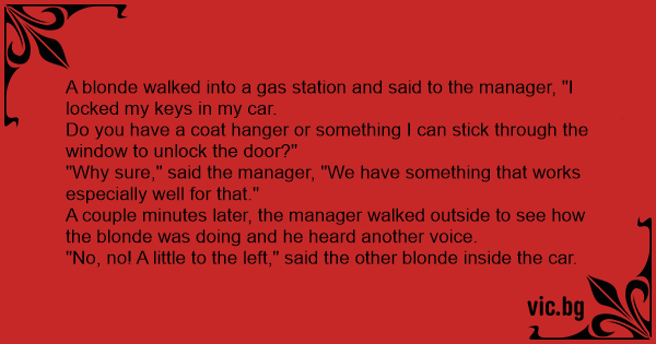 A blonde walked into a gas station and said to the manager, "I locked my keys in my car.