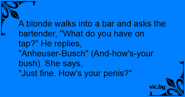 A blonde walks into a bar and asks the bartender, "What do you have on tap?" He replies,
