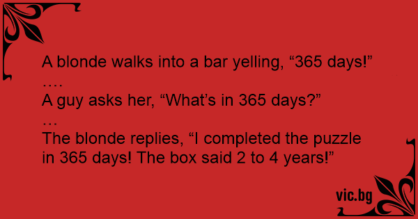 The blonde replies, “I completed the puzzle in 365 days! The box said 2 to 4 years!”
