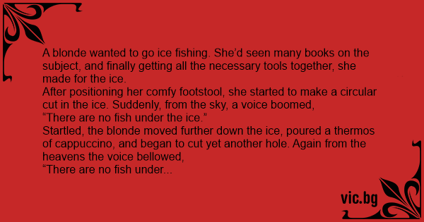 Startled, the blonde moved further down the ice, poured a thermos of cappuccino, and began to cut yet another hole. Again from the heavens the voice bellowed,