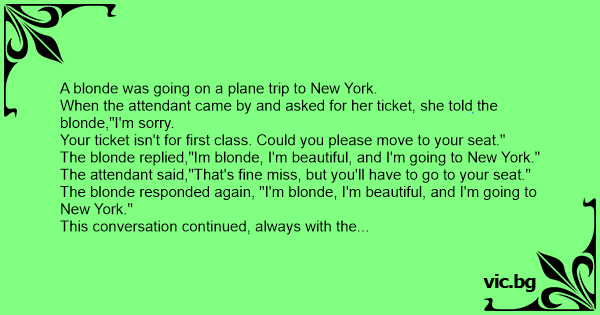 The blonde responded again, "I'm blonde, I'm beautiful, and I'm going to New York."