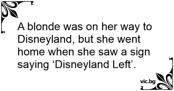 A blonde was on her way to Disneyland, but she went home when she saw a sign saying ‘Disneyland Left’.