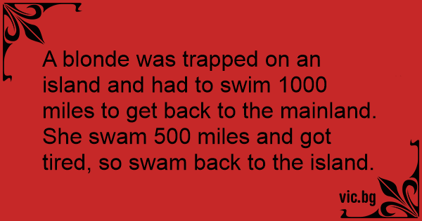 A blonde was trapped on an island and had to swim 1000 miles to get back to the mainland.