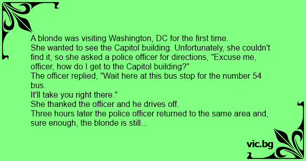 The officer got out of his car and said, "Excuse me, but to get to the Capitol building, I said to wait here for the number 54 bus.