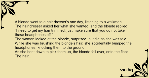 A blonde went to a hair dresser's one day, listening to a walkman.