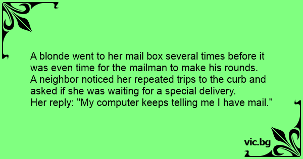 A blonde went to her mail box several times before it was even time for the mailman to make his rounds.