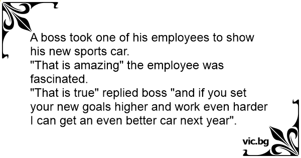"That is true" replied boss "and if you set your new goals higher and work even harder I can get an even better car next year".
