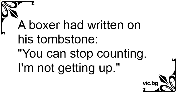 A boxer had written on his tombstone:<br />"You can stop counting. <br />I'm not getting up."