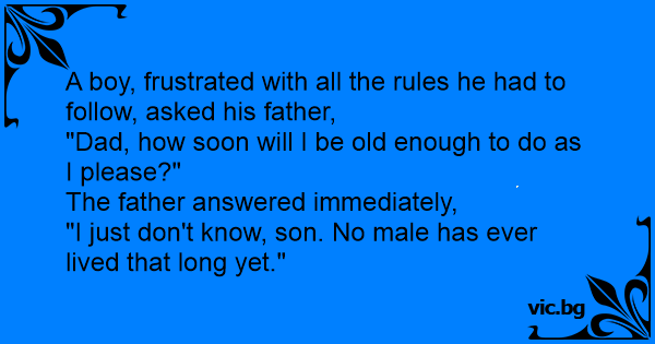 A boy, frustrated with all the rules he had to follow, asked his father,