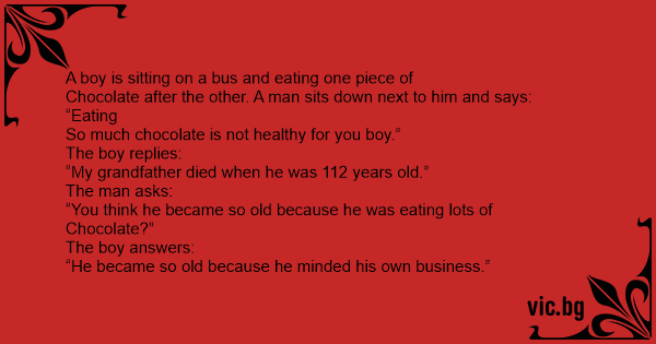 Chocolate after the other. A man sits down next to him and says: