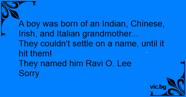 A boy was born of an Indian, Chinese, Irish, and Italian grandmother...