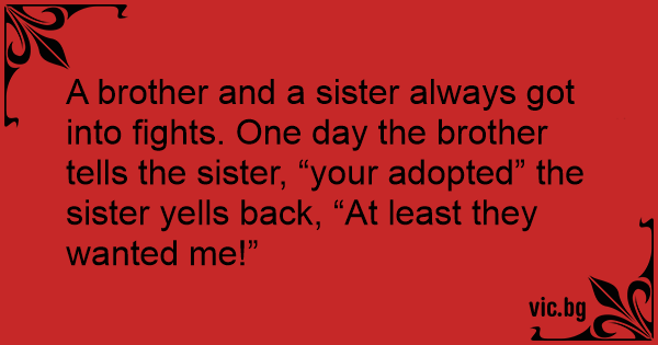 A brother and a sister always got into fights. One day the brother tells the sister, “your adopted” the sister yells back, “At least they wanted me!”
