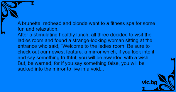 Excited over the possibility of having a wish come true, the blonde looked into the mirror and said, “I think…” and was promptly suскеd into the mirror.