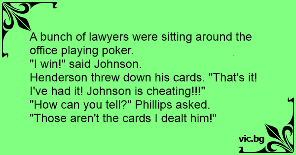Henderson threw down his cards. "That's it! I've had it! Johnson is cheating!!!"