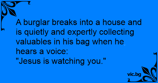 A burglar breaks into a house and is quietly and expertly collecting valuables in his bag when he hears a voice:
