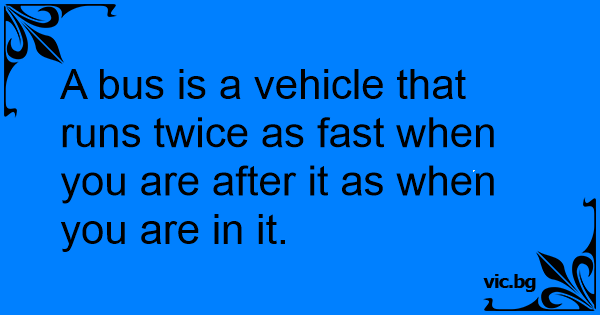 A bus is a vehicle that runs twice as fast when you are after it as when you are in it.
