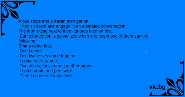 A bus stops and 2 Italian...