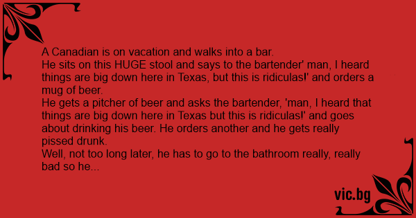 He gets a pitcher of вееr and asks the bartender, 'man, I heard that things are big down here in Texas but this is ridiculas!' and goes about drinking his вееr. He orders another and he gets really рissеd drunк.