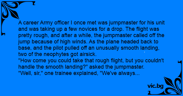 "How come you could take that rough flight, but you couldn't handle the smooth landing?" asked the jumpmaster.