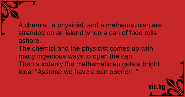 Then suddenly the mathematician gets a bright idea: "Assume we have a can opener..."
