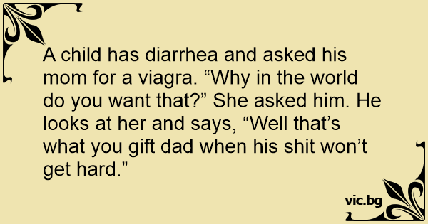 A child has diarrhea and asked his mom for a viаgrа. “Why in the world do you want that?” She asked him. He looks at her and says, “Well that’s what you gift dad when his shiт won’t get hard.”