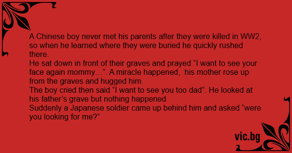 A Chinese boy never met his parents after they were killed in WW2, so when he learned where they were buried he quickly rushed there.