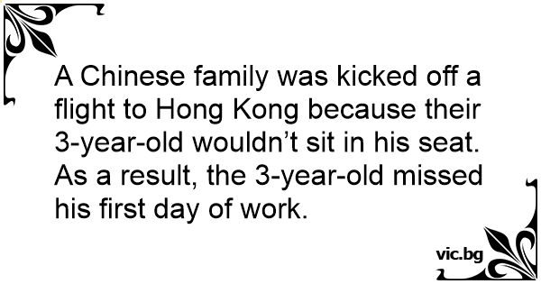 A Chinese family was kicked off a flight to Hong Kong because their 3-year-old wouldn’t sit in his seat. As a result, the 3-year-old missed his first day of work.
