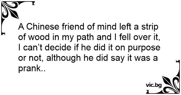 A Chinese friend of mind left a sтriр of wood in my path and I fell over it,