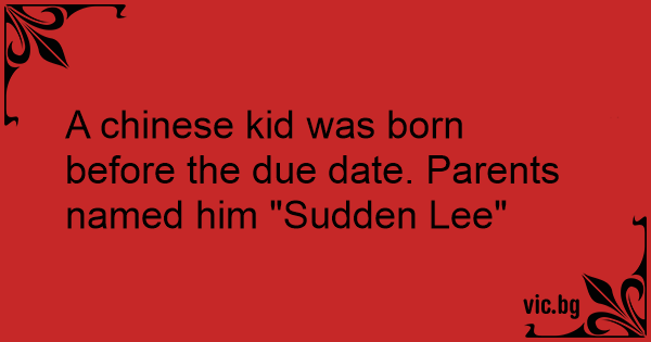 A chinese kid was born before the due date. Parents named him "Sudden Lee"