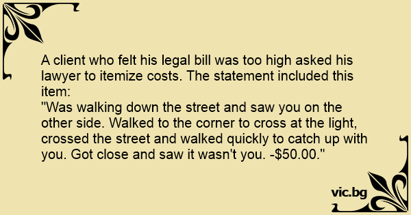 A client who felt his legal bill was too high asked his lawyer to itemize costs. The statement included this item: