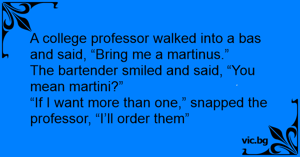 A college professor walked into a bas and said, “Bring me a martinus.”