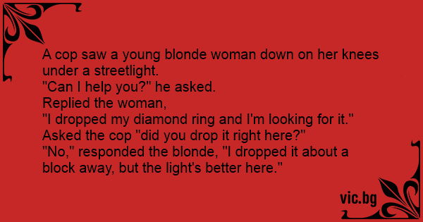 "No," responded the blonde, "I dropped it about a block away, but the light's better here."