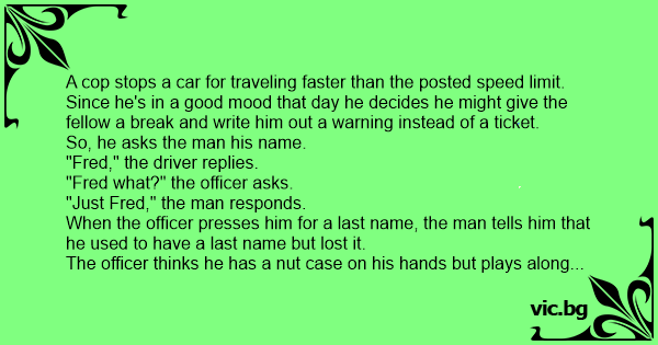 A cop stops a car for traveling faster than the posted speed limit. Since he's in a good mood that day he decides he might give the fellow a break and write him out a warning instead of a ticket.