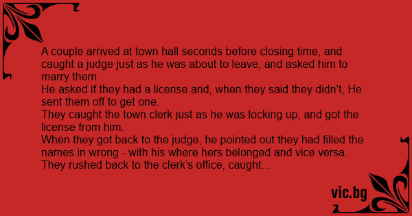 A couple arrived at town hall seconds before closing time, and caught a judge just as he was about to leave, and asked him to marry them.