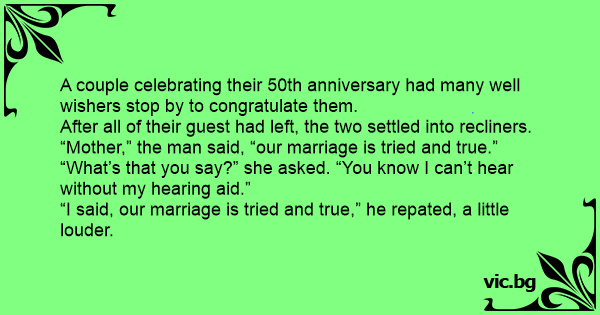 “I said, our marriage is tried and true,” he repated, a little louder.