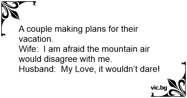 Wife: I am afraid the mountain air would disagree with me.