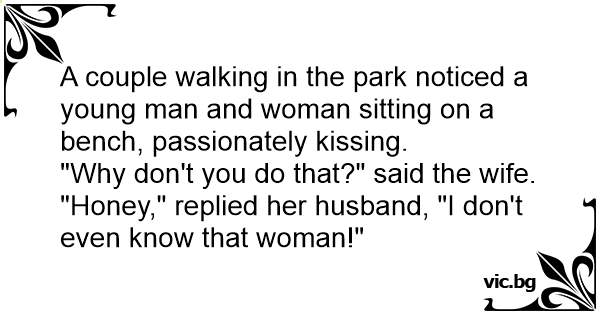 A couple walking in the park noticed a young man and woman sitting on a bench, passionately kissing.