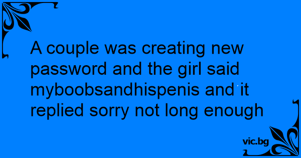 A couple was creating new password and the girl said myboobsandhispenis and it replied sorry not long enough