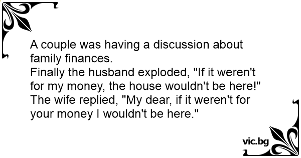 The wife replied, "My dear, if it weren't for your money I wouldn't be here."