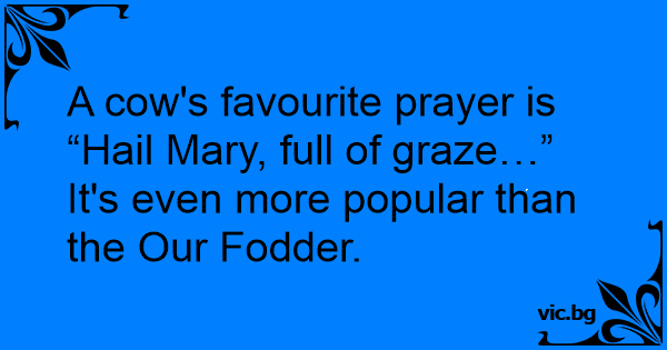 A соw's favourite prayer is “Hail Mary, full of graze…” It's even more popular than the Our Fodder.